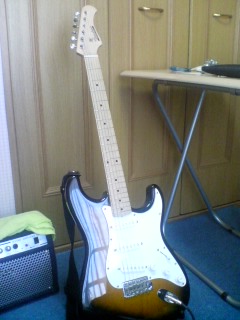 バッカスのストラトギター。二万程度のセット品。
